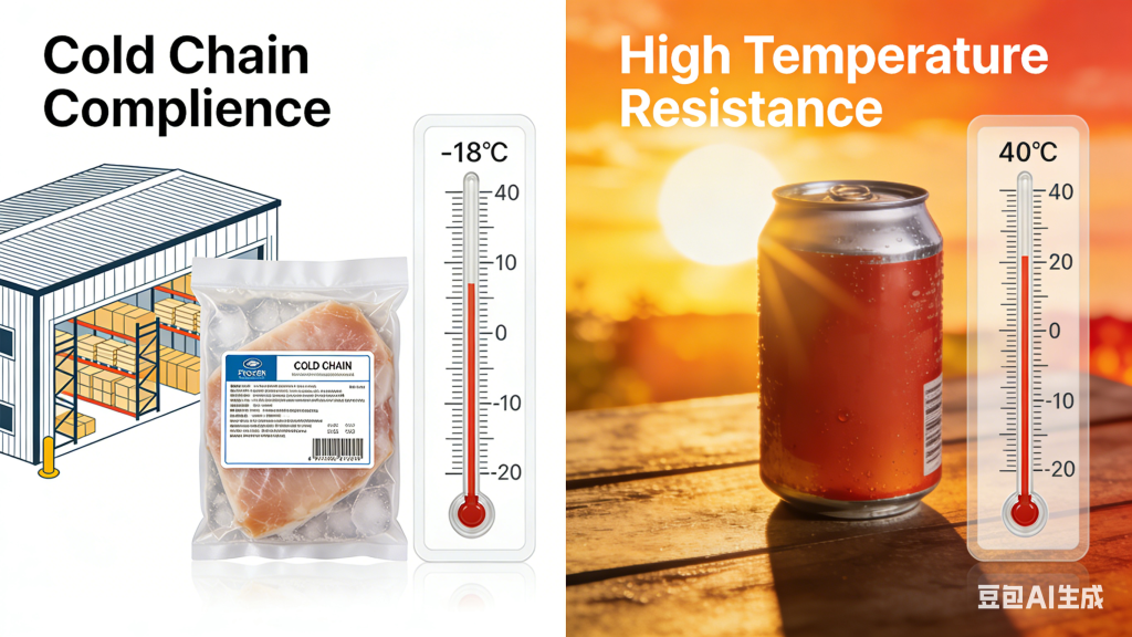Food and beverage products face a gauntlet of challenges: extreme temperatures in cold chains, moisture from refrigeration, oil from processed foods, and physical friction during transportation. A durable label must maintain adhesion and legibility through all these stages.